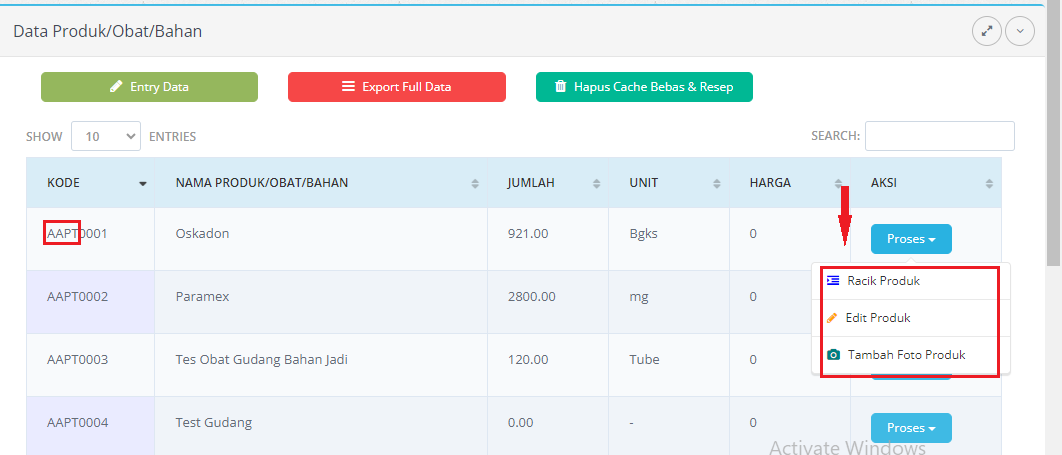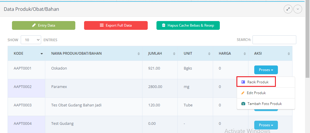c. Klik Proses, kemudian klik opsi Racik Produk,