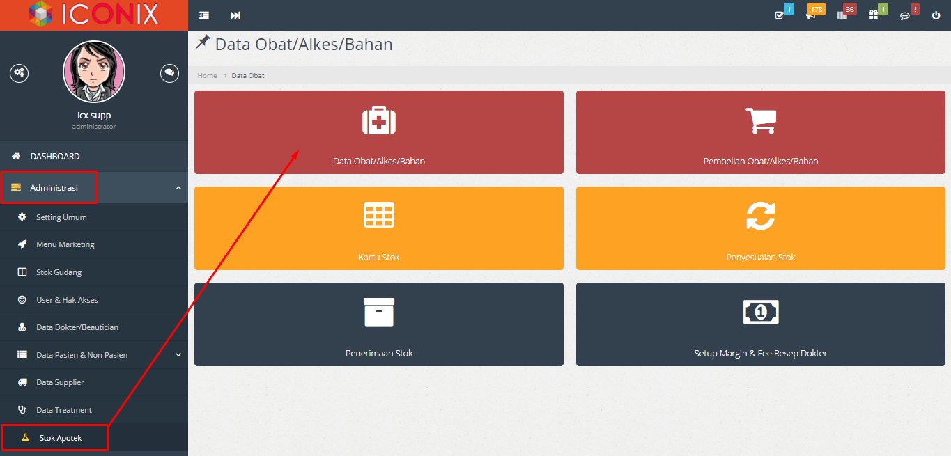 a. Buka menu Administrasi > Stok Apotek > Data Obat/Alkes/Bahan,