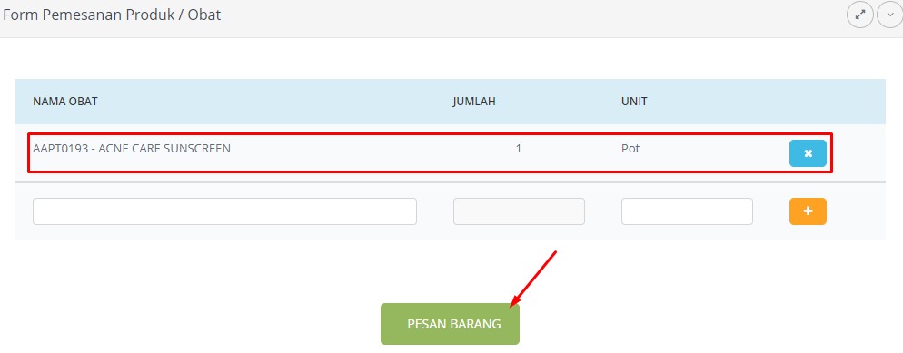 4. Pesan Produk/Obat Ke Gudang