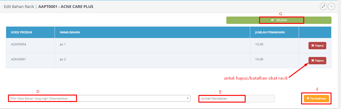 f. Klik TAMBAHKAN yang ada di samping kanan jumlah agar obat racikan yang diinput bisa terproses.