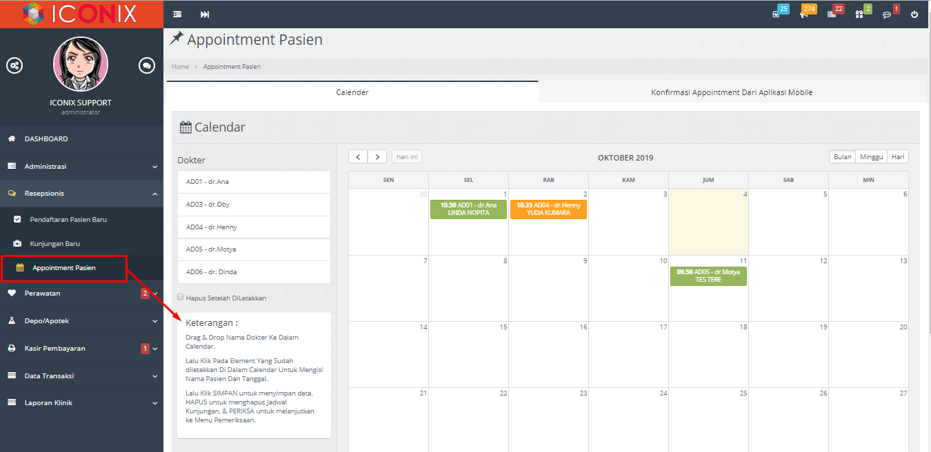 Menu Appointment Pasien memiliki fungsi untuk mempermudah dalam penjadwalan perawatan pasien.