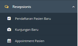 Menu Kunjungan Baru adalah bagian paling utama dari proses pelayanan perawatan dan antrian pasien. Klik Resepsionis > Kunjungan Baru.